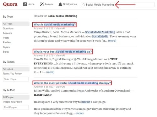 Search your topic in the Search bar of Quora, and find the most popular question in the content category.